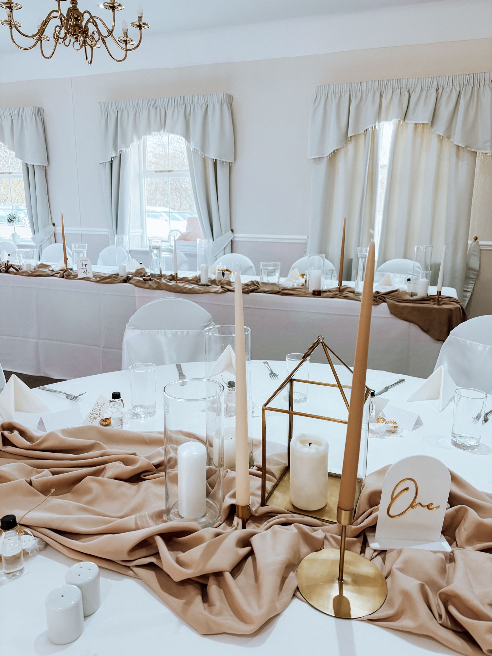 Candles can fill up lots of space while still creating a beautiful, ambient setting. They can also be a more affordable option although shouldn’t be mistaken for a cheap option. When using a stylist, we will source good quality candles in the correct shades and also deal with the candle wax mess the following day.